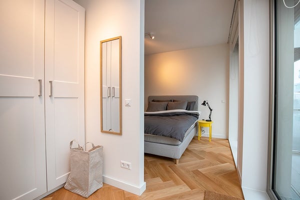 Tout l'appartement a un parquet en chêne avec fonction de chauffage et de refroidissement, les fenêtres sont à triple vitrage et des panneaux solaires sont installés sur le bâtiment.