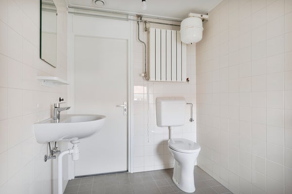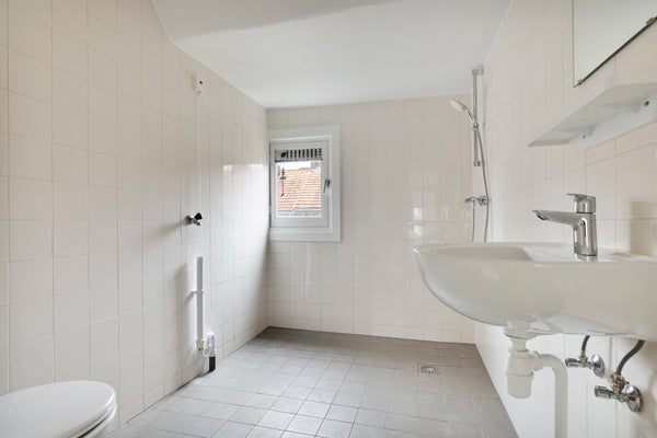 Il y a un placard séparé avec les connexions pour une machine à laver et éventuellement un sèche-linge. La salle de bain comprend un WC et une douche à l'italienne. Veuillez noter : le nouveau locataire doit tenir compte de la finition des murs et des sols. Les murs ont été nouvellement plâtrés. Étiquette énergétique A.