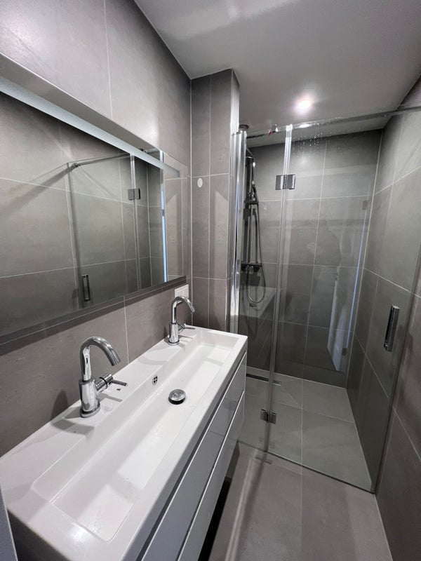 La deuxième chambre est accessible par le couloir et offre une intimité supplémentaire, idéale comme chambre d'amis ou deuxième chambre. La salle de bain est située au centre et est agencée de manière pratique. De plus, le logement dispose d'un toilet séparé avec lavabo.