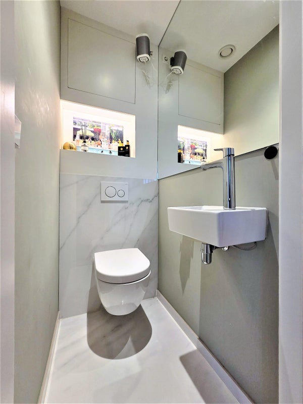 Il y a également un placard séparé avec machine à laver/sèche-linge, soigneusement caché et placé de manière pratique.