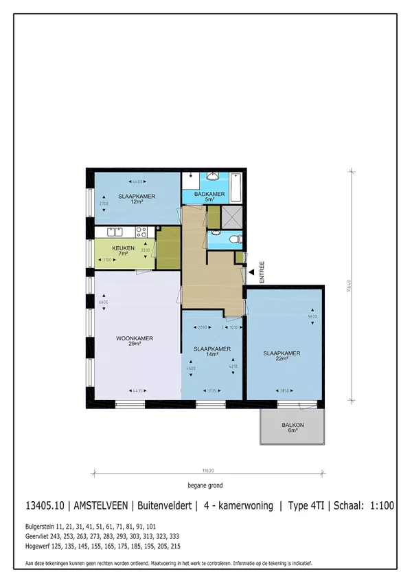 Cet appartement à Buitenveldert offre 108 m² avec trois chambres et deux balcons. Le salon lumineux d'environ 20 m² est le cœur de la maison et donne accès au premier balcon, parfait pour déguster votre café du matin. La cuisine ouverte est équipée d'appareils modernes, y compris une plaque de cuisson à induction et un four électrique. Le couloir mène aux chambres, la plus grande ayant un accès direct au deuxième balcon. La salle de bain moderne comprend une douche à l'italienne, une baignoire et un lavabo, tandis que les toilettes sont dans une pièce séparée. Une remise à l'intérieur offre de l'espace pour une machine à laver. Buitenveldert offre calme et tranquillité tout en étant proche de la Zuidas, avec des magasins et le Bos d'Amsterdam à proximité, ainsi que de bonnes connexions vers l'A10 et les transports en commun.