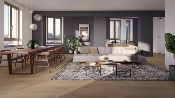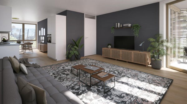 Vous disposez de deux grandes chambres et d'un salon lumineux avec accès à un grand espace extérieur d'environ 6 m², situé au nord-ouest. Cette orientation vous permet de profiter du soleil l'après-midi et le soir – parfait pour un moment de détente après votre journée ou un dîner à la lumière extérieure.