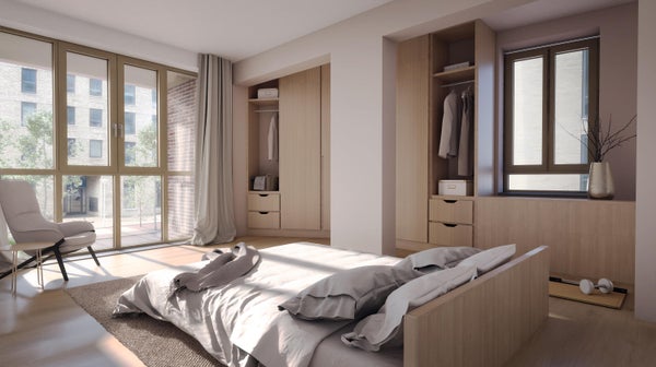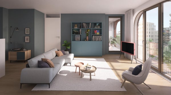 Le type de logement B-G est un appartement spacieux de 3 pièces d'environ 85 m², situé au milieu du bloc résidentiel B. Cet appartement se trouve quatre fois du deuxième au cinquième étage et se situe du côté de l'Elzenhagensingel – une rue animée d'Amsterdam-Noord.