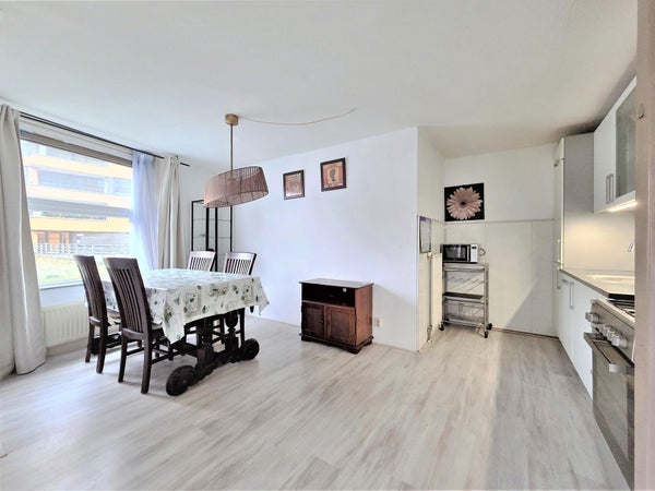 Au premier étage d'un complexe d'appartements moderne (construit en 2002) à Geuzenveld-Slotermeer se trouve cet appartement lumineux et bien agencé de environ 104 m². Grâce à son emplacement en hauteur, le logement bénéficie de beaucoup de lumière naturelle et d'une belle vue dégagée sur l'eau et les environs. L'appartement dispose de deux chambres, d'un balcon spacieux d'environ 9 m², d'une place de parking privative dans le garage souterrain et est entièrement équipé de double vitrage.