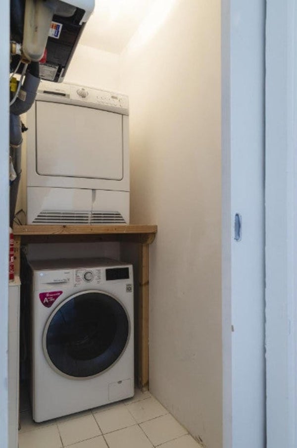 L'appartement est situé au troisième étage et est accessible par les escaliers ou par l'ascenseur. Le salon lumineux est le cœur de la maison et comprend un coin salon confortable, une télévision, une table à manger et un grand cabinet pour un espace de rangement supplémentaire. La cuisine semi-ouverte est moderne et équipée d'un four à micro-ondes combiné. À ce niveau, un petit balcon est également accessible.