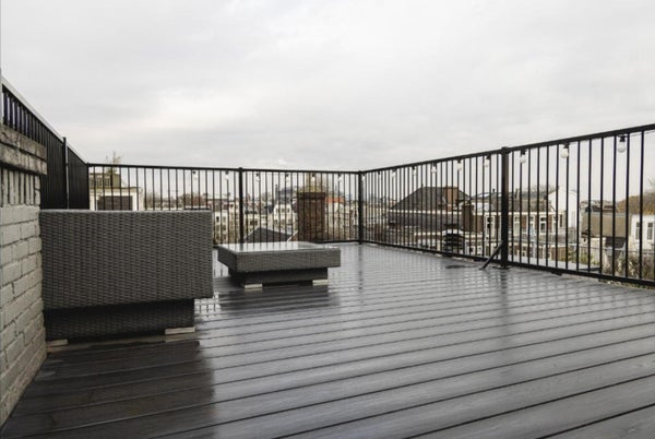 La grande terrasse sur le toit offre une vue panoramique sur le beau centre d'Amsterdam et est idéale pour se détendre ou profiter du soleil.
