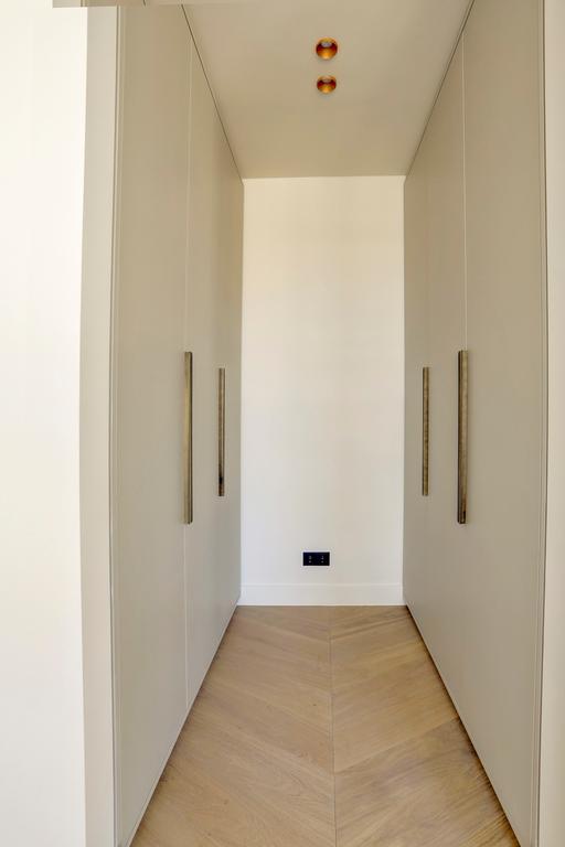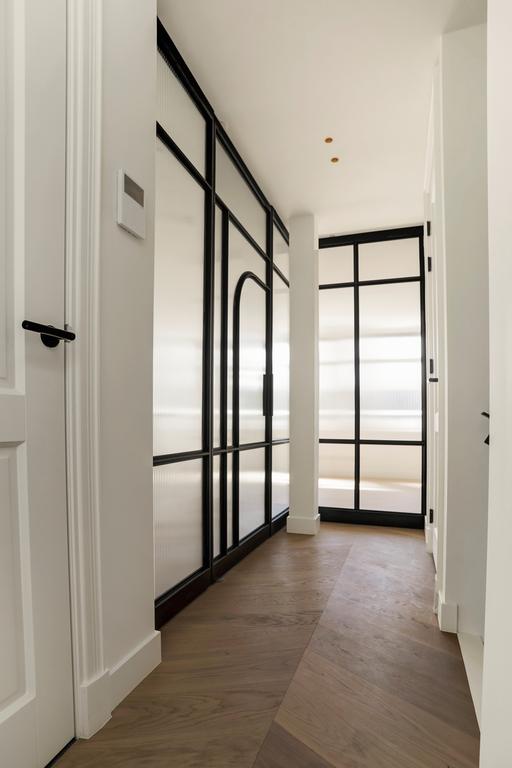 Tous les appartements ont bénéficié d'une finition de haute qualité avec un style complètement unique. Le style a été conçu par Heyligers Architects et peut être le mieux décrit comme « chic d'Amsterdam rencontre le minimalisme scandinave ». Un style qui représente beaucoup de détails, des moulures et des lignes épurées, pour des matériaux naturels, du minimalisme et une sérénité tranquille. De nombreuses teintes claires ont été utilisées dans les appartements, qui sont combinées avec des façades en acier foncé. Contrairement à un verre clair normal, du verre strié a été utilisé dans la façade en acier, créant une atmosphère spéciale. Le parquet clair en chêne, posé en point hongrois, les portes à panneaux blancs, les moulures autour des fenêtres et des portes et les plinthes classiques assurent une apparence luxueuse. Chaque détail a été pris en compte dans les appartements. Ils sont équipés d'un dressing et de niches qui offrent de l'espace pour des armoires décoratives.