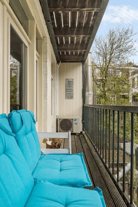 Charmant APPARTEMENT de 3 pièces d'environ 71 m², réparti sur DEUX ÉTAGES, avec DEUX BALCONS d'environ 5 m² chacun. Situé sur un TERRAIN EN PLEINE PROPRIÉTÉ dans la populaire rue Balthasar Florisz à Amsterdam-Zuid, à distance de marche de Beethovenstraat et Museumplein. Un appartement charmant dans un emplacement de choix ! LA PROPRIÉTÉ Par l'escalier communal bien entretenu, vous accédez à l'entrée de cet appartement lumineux au deuxième étage. Vous entrez dans le hall, où se trouve immédiatement un toilette avec lavabo. À l'avant de la propriété se trouve la salle à manger/salon spacieuse et lumineuse avec cuisine ouverte. La cuisine est équipée de divers appareils électroménagers intégrés, y compris une cuisinière à gaz à 4 feux, un four, un lave-vaisselle, un réfrigérateur et un congélateur. Cet espace de vie chaleureux est parfait pour des dîners conviviaux ou une soirée de détente. À l'arrière de cet étage, vous trouverez un deuxième salon spacieux d'environ 15 m², qui était auparavant utilisé comme chambre. Cette pièce donne accès au premier balcon d'environ 5 m², un endroit agréable pour se détendre ou commencer sa journée avec une tasse de café. Par les escaliers, vous accédez au troisième étage. Ici, vous trouverez un palier spacieux avec accès à la salle de bains moderne, équipée d'une douche, d'un deuxième toilette et d'un lavabo. À l'arrière se trouve une chambre spacieuse d'environ 14 m² équipée de la climatisation, avec des portes-fenêtres menant au second balcon d'environ 5 m². Atteignant cette chambre, vous disposez d'une buanderie pratique d'environ 4 m², idéale comme salle de lavage ou espace de rangement supplémentaire.