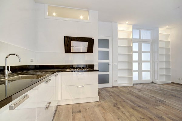 Entrée privée au rez-de-chaussée. Par le hall, vous entrez dans le salon très spacieux et lumineux. La cuisine ouverte s'y intègre parfaitement et est équipée de tous les appareils encastrés nécessaires.