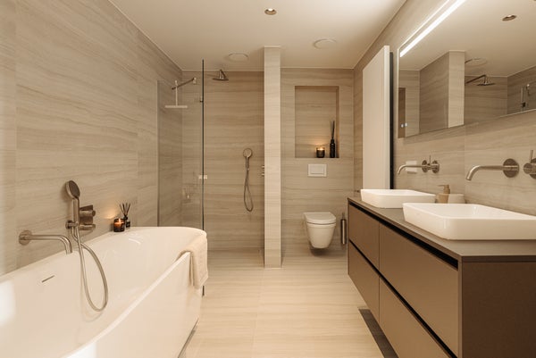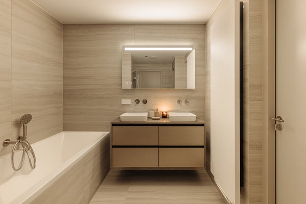 - Trois chambres, deux salles de bains, deux terrasses orientées à l'ouest