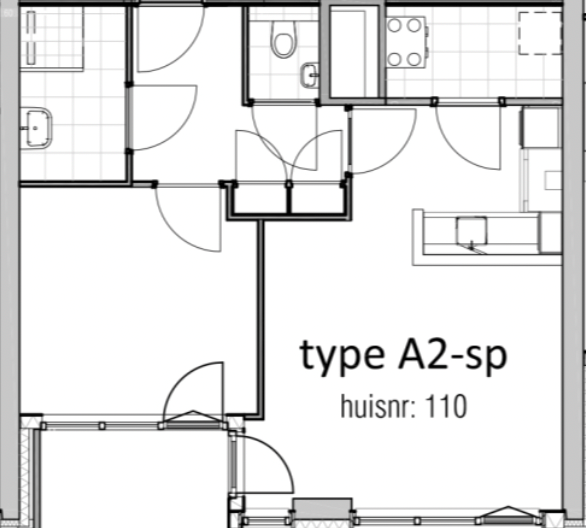 L'appartement est équipé d'un revêtement de sol en PVC de haute qualité et d'une cuisine moderne avec des appareils intégrés tels que : plaque de cuisson à induction, hotte aspirante, lave-vaisselle, four à micro-ondes combiné et réfrigérateur-congélateur ou réfrigérateur avec compartiment congélateur. Tous les logements sont également équipés de stores solaires design automatiques et de chauffage au sol. La salle de bain est entièrement carrelée jusqu'au plafond et dispose d'une douche à l'italienne et d'un lavabo. L'appartement comprend des toilettes séparées. De plus, l'appartement dispose d'un balcon orienté au nord-ouest.