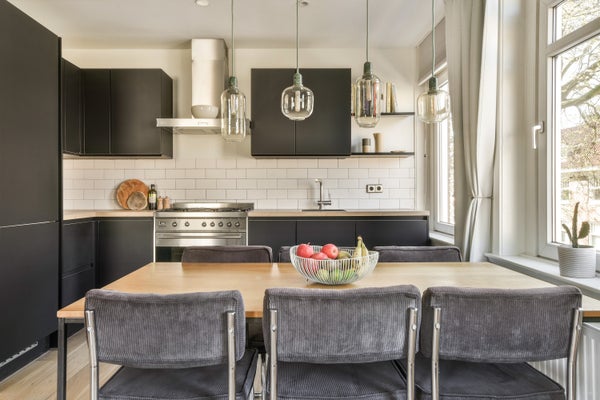 Entrée par l'escalier commun au deuxième étage. Entrée dans le hall avec accès à toutes les pièces. Le salon avec cuisine ouverte est particulièrement lumineux grâce à sa position d'angle et a un caractère ouvert et spacieux. La cuisine moderne est équipée de divers appareils intégrés, dont une cuisinière à gaz Smeg de 5 brûleurs avec four, un lave-vaisselle, un réfrigérateur, un congélateur, une hotte et un micro-ondes.