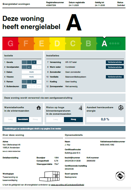 à louer: Appartement Van Ollefenstraat 46 dans Amsterdam