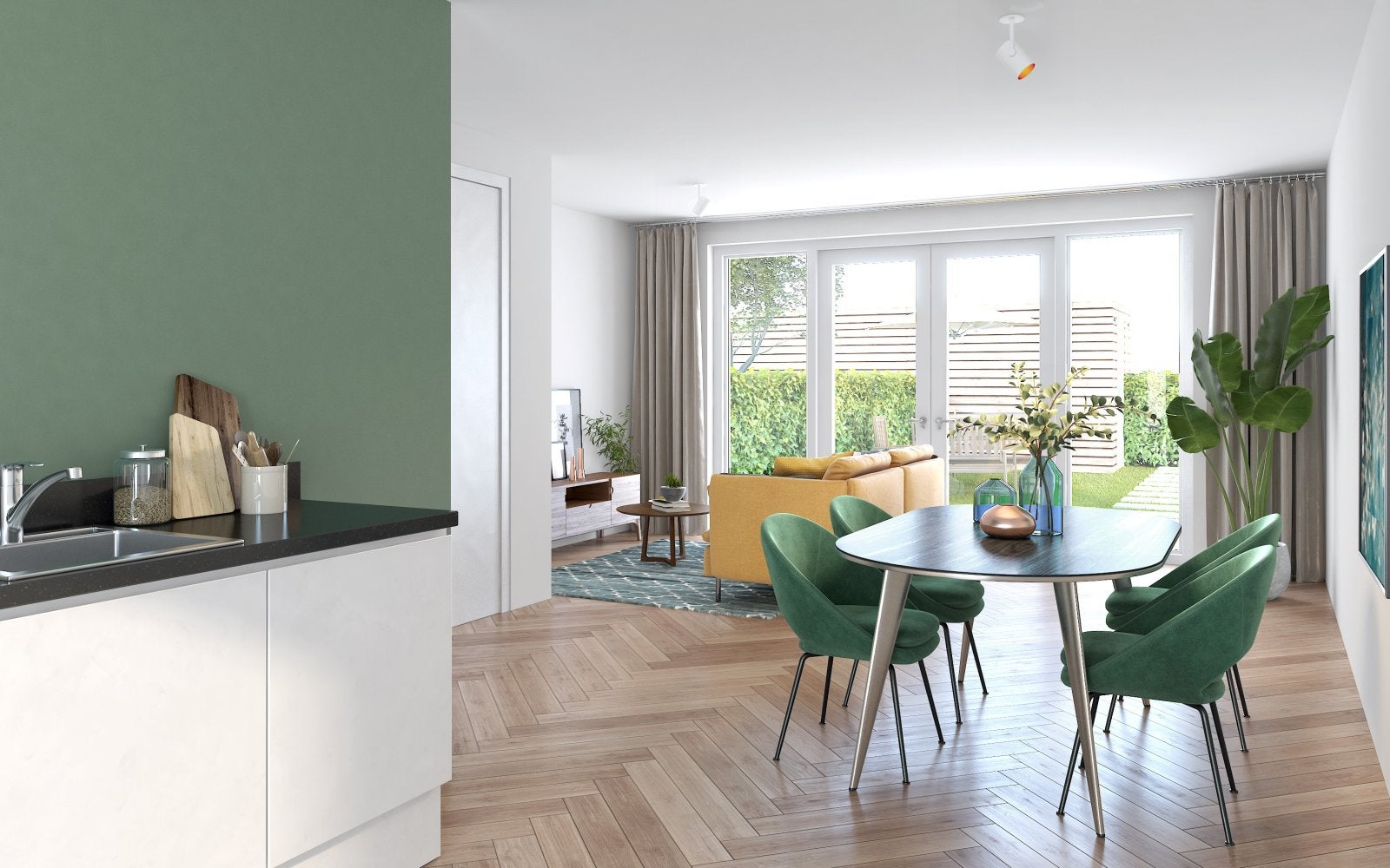 Cette spacieuse maison mitoyenne de 5 pièces a une surface habitable de 129 m2. La propriété dispose d'une cuisine entièrement équipée avec des appareils Siemens en disposition îlot. La salle de bain comprend un double lavabo, une douche avec paroi en verre et des toilettes. La maison est située dans un quartier attrayant semblable à un parc, à l'est d'Apeldoorn, près de l'A50, de la gare De Maten et du centre. Le loyer est de 1360 € par mois, avec un bail d'une durée minimale d'un an et un préavis d'un mois par la suite.