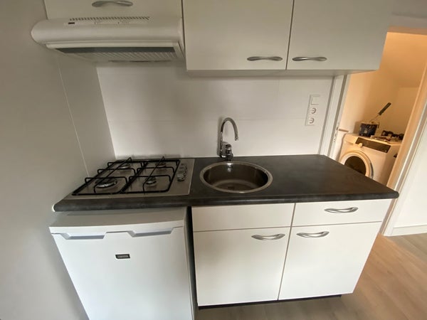 Cet charmant studio d'environ 20 m² dispose d'une cuisine privée équipée de toutes les commodités, y compris un réfrigérateur et une machine à laver personnelle. Le studio dispose également d'une douche privée. Les toilettes sont partagées avec trois colocataires.