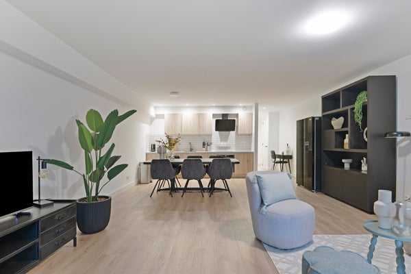 Ce superbe logement offre une excellente base pour une famille. L'appartement est lumineux et spacieux, avec une finition moderne et totalement neuf. Le grand salon possède de grandes fenêtres qui laissent entrer beaucoup de lumière naturelle. La cuisine est entièrement équipée avec tout l'équipement nécessaire. Il y a trois grandes chambres avec des placards intégrés et une salle de bain avec douche à l'italienne et lavabo. De plus, il y a un espace de rangement séparé avec un lave-linge / sèche-linge. En résumé, un appartement parfait où vous pouvez vous détendre.