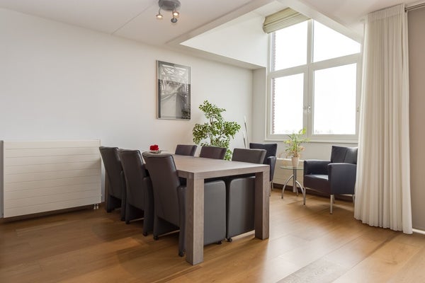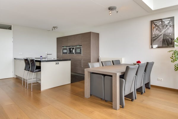 Ce luxueux penthouse d'environ 122 m² est situé dans le populaire quartier résidentiel de Parijsch. Il offre une vue imprenable sur l'eau et un balcon ensoleillé orienté sud-ouest. Le salon spacieux et lumineux, avec un bel étage en stratifié, s'ouvre sur la cuisine ouverte équipée d'appareils électroménagers modernes, dont une plaque de cuisson à induction et une machine à café intégrée. Il comprend deux grandes chambres et une salle de bain bien aménagée avec baignoire et douche à l'italienne. Deux places de parking privées sont disponibles dans le garage souterrain. L'immeuble dispose d'un jardin intérieur commun et est bien desservi par les autoroutes A2 et A15. Le loyer est de 2 000 € par mois, hors charges. La livraison est prévue pour mi-janvier 2026.
