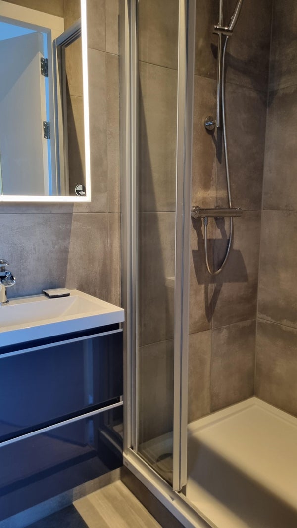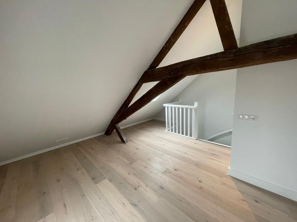 Par l'escalier ouvert menant au troisième étage, il est possible d'accéder à la chambre. Cet espace peut également être partiellement utilisé comme bureau à domicile. La salle de bain avec douche à l'italienne et lavabo est également située à cet étage.