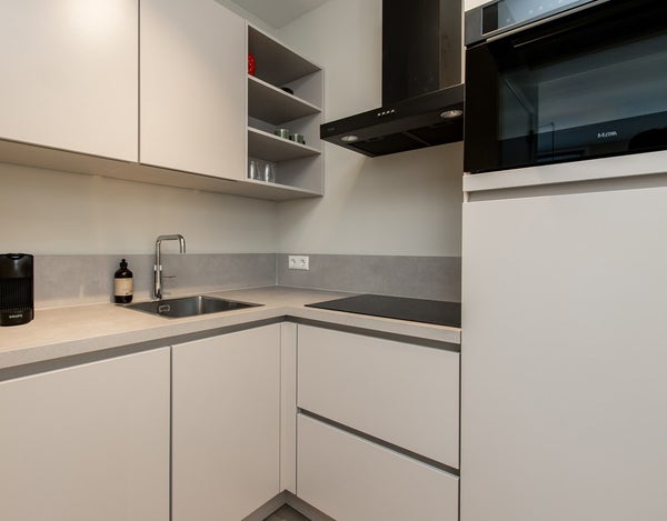 Le salon ouvert est parfait pour se détendre après une longue journée de travail ou pour explorer la ville. La cuisine est équipée de tous les appareils modernes.