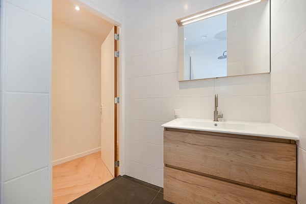 En entrant dans la propriété, vous arrivez dans le hall, qui donne accès au salon, à la chambre, à la salle de bain et aux toilettes séparées. Le salon spacieux et lumineux dispose de grandes fenêtres qui laissent entrer beaucoup de lumière naturelle. La cuisine ouverte est entièrement équipée d'appareils électroménagers modernes, y compris un four, une plaque à induction avec hotte intégrée, un lave-vaisselle, un réfrigérateur et un congélateur. À partir du salon, vous avez accès à la deuxième chambre. La salle de bain est moderne et dispose d'une douche à l'italienne, d'un lavabo avec meuble et d'un raccordement pour la machine à laver. L'ensemble de la propriété est équipé d'un chauffage par le sol pour un confort supplémentaire.