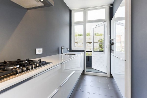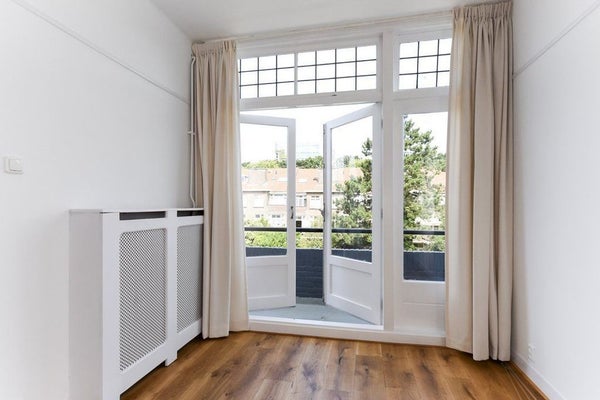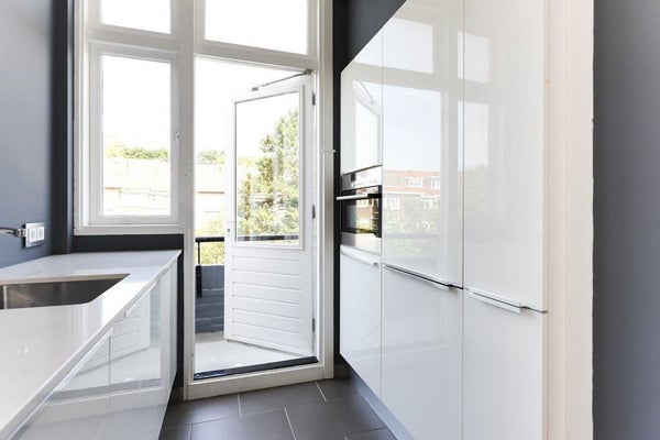 Cet appartement moderne, lumineux et tendance de 2 chambres, partiellement meublé, est situé dans le quartier résidentiel de Benoordenhout, près des bâtiments de l'ICC et de l'OTAN. Les commerces, les transports en commun, le parc "Clingendael" et les dunes sont accessibles à pied, tout comme la plage. L'entrée spacieuse mène au deuxième étage, où se trouve un palier avec un placard contenant un lave-linge et un sèche-linge, un toilette moderne, et un salon lumineux avec un balcon à l'arrière. La cuisine est équipée d'appareils Siemens. La chambre principale à l'avant dispose d'un sol en bois et d'une salle de bain attenante, tandis que la deuxième chambre se trouve à l'arrière. L'appartement est loué pour une durée minimale d'un an, avec un dépôt d'un mois requis. Pas d'animaux, ni de fumeurs autorisés.