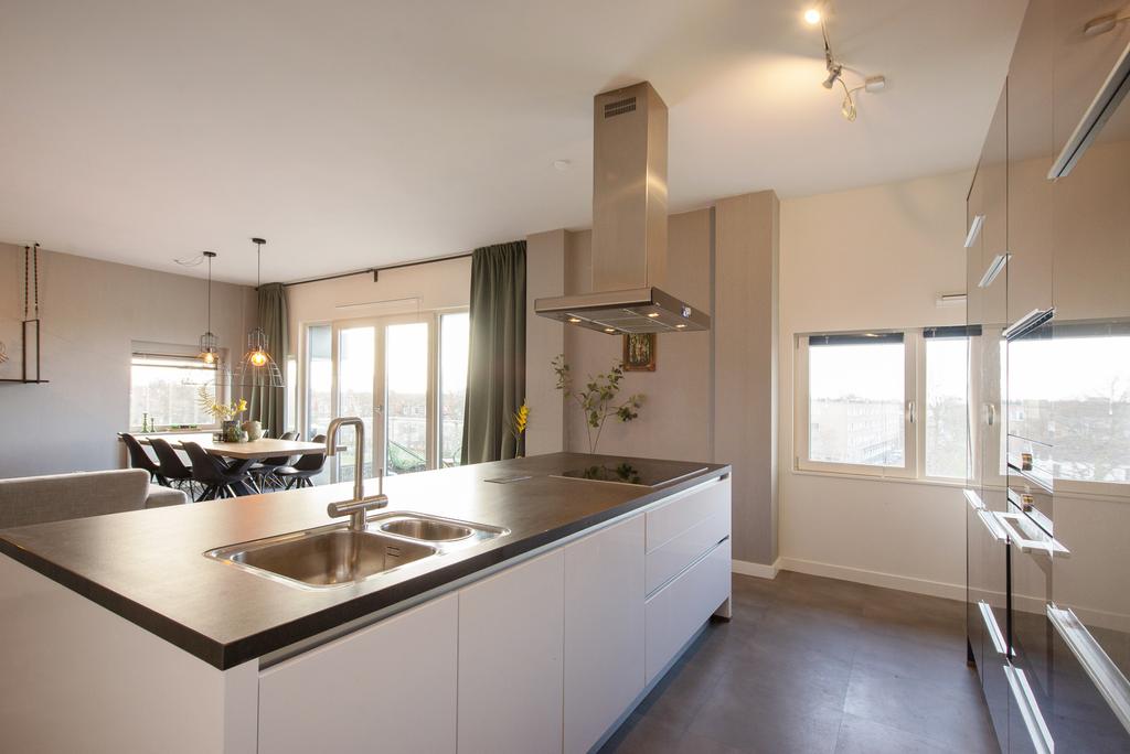 Ce magnifique appartement luxueux de 153 m² est situé au bord de l'eau à Binckhorst et dispose de quatre pièces, dont trois chambres et un bureau idéal. Le grand salon ouvert et la cuisine créent une ambiance lumineuse et spacieuse, avec un balcon offrant une vue imprenable sur la Trekvliet historique. La salle de bain luxueuse est équipée d'une baignoire à remous, d'une douche à l'italienne et d'un sauna. Situé au troisième étage, l'appartement dispose de chauffage au sol et est proche du centre de La Haye, avec des transports publics et un parking à proximité. La cuisine ouverte moderne est idéale pour les amateurs de cuisine, avec des appareils de haute qualité et beaucoup d'espace de rangement. Cet appartement offre d'excellentes opportunités de vie.