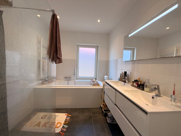 L'ensemble de la propriété est équipé de revêtements de sol en stratifié, de rideaux, de double vitrage, de luminaires et est chauffé par le chauffage central. La connexion pour le lave-linge/sèche-linge est située dans un espace séparé.