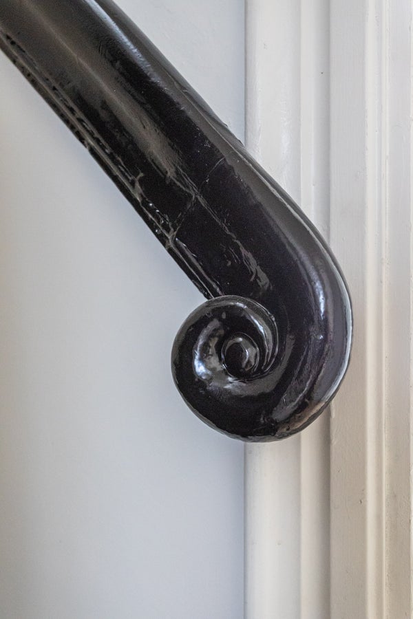 Entrée au niveau de la rue avec un escalier menant au premier étage. Ici, vous entrez dans un couloir central qui donne accès au spacieux salon en suite avec un coin repas et une cuisine ouverte. La chambre de devant (environ 4.60 x 3.80 m) est dotée d'une belle cheminée d'origine et de grandes fenêtres qui laissent entrer beaucoup de lumière naturelle. La chambre arrière (environ 4.75 x 5.80 m) est le cœur de la maison et est équipée d'une cuisine moderne et luxueuse avec tous les appareils électroménagers intégrés nécessaires, ainsi qu'une autre cheminée d'origine.