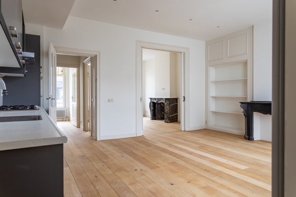 Profitez de vivre dans l'un des quartiers les plus vibrants et caractéristiques de La Haye. Cet appartement spacieux au dernier étage de la charmante Frederikstraat combine l'élégance classique de La Haye avec le confort moderne. La propriété dispose d'un beau salon et salle à manger en suite, où un élégant lustre et des détails originaux créent une atmosphère chaleureuse et accueillante.