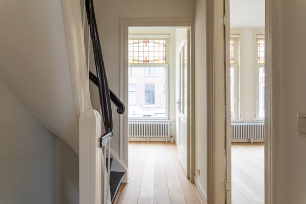 Avec pas moins de trois chambres, de grandes fenêtres qui laissent entrer beaucoup de lumière naturelle, une salle de bain luxueuse avec douche à l'italienne double et deux balcons ensoleillés, cet appartement offre tout pour un confort de vie urbain. L'emplacement est idéal : à distance de marche du centre historique de La Haye et de la gare centrale, tandis qu'à deux pas, vous pouvez profiter des vivants restaurants, boutiques et épiceries de Frederikstraat et Denneweg.