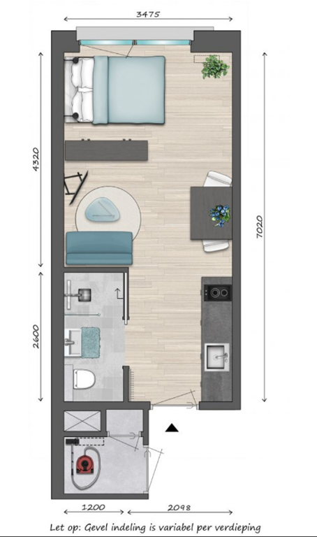 La HAYE - LAAKKWARTIER : Studio moderne situé au troisième étage du complexe immobilier neuf GO070 ! Le logement sera livré non meublé et est disponible à partir du 01-04-2026.