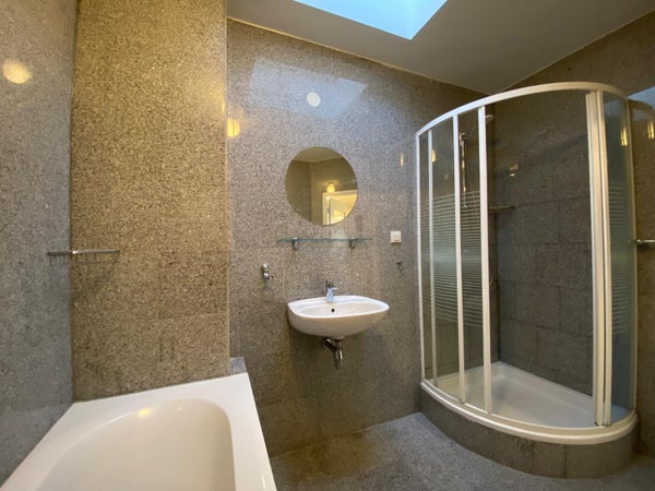 Entrée commune au niveau de la rue avec la porte d'entrée privée de l'appartement au 2ème étage. Grand et agréable salon lumineux (environ 23m2) situé à l'avant de l'appartement. La cuisine moderne et spacieuse (environ 13m2) constitue le cœur de l'appartement et est équipée d'appareils électroménagers intégrés (plaque de cuisson, hotte, réfrigérateur, lave-vaisselle, micro-ondes, four et cafetière !). Grande chambre (environ 4,00x3,30m) et agréable chambre lumineuse qui donne accès au balcon situé à l'arrière de l'appartement par des portes-fenêtres. La cuisine donne également accès à une 2ème chambre/bureau (environ 3.90x2.30m). Par ailleurs, cet appartement dispose d'une salle de bains spacieuse (environ 2.10x2.80m) équipée d'une baignoire, d'une douche séparée, d'un lavabo fixe, d'un radiateur à serviettes, les toilettes sont séparées de la salle de bains.