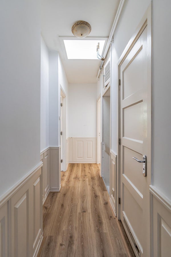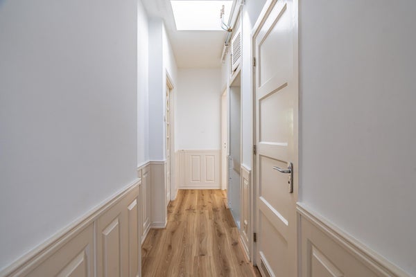 Le salon est très spacieux avec 36 m² (11,1 x 3,27). L'ambiance est une combinaison agréable d'authentique et de moderne. Les portes-fenêtres menant au balcon (exposé au sud) créent une ambiance des années 30, tandis que les murs crépis et la cuisine ouverte en font une maison d'aujourd'hui. La belle lumière naturelle fait de cette pièce un espace de vie agréable.