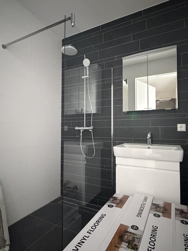 L'appartement est actuellement en cours de finition complète et prêt à être occupé. Le logement sera équipé d'une cuisine complète, d'une salle de bain, et de toilettes. De plus, l'appartement sera fini avec des matériaux de haute qualité, un sol en PVC, des finitions murales épurées, un éclairage, des rideaux et des placards intégrés dans les chambres. Ainsi, vous disposerez bientôt d'un appartement moderne et confortable, prêt à être habité.