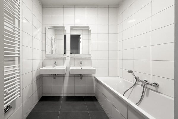 La généreuse chambre principale est conçue avec une zone de bain ouverte de style Boutique pour le confort et la détente. Idéalement positionnée au souterrain, elle crée une atmosphère calme et intime loin de la zone de vie principale. Une fenêtre de plafond permet à la lumière naturelle d'entrer dans l'espace. Elle dispose d'une baignoire autoportante, d'une douche à l'italienne spacieuse, d'un double lavabo et d'un toilette.