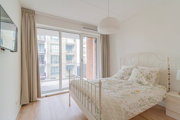 Le salon avec cuisine ouverte est spacieux et lumineux et offre un accès au grand balcon. La cuisine est équipée de toutes les commodités, telles qu'une plaque de cuisson électrique, un réfrigérateur avec congélateur et un lave-vaisselle. La chambre est dotée d'un lit double et d'une grande armoire. Le balcon est également accessible depuis la chambre. La salle de bains est équipée d'une douche à l'italienne et d'un lavabo. Les toilettes séparées se trouvent dans le couloir. Un espace de rangement séparé est inclus avec l'appartement. Une place de parking dans le garage de stationnement fermé peut être louée en option.