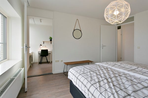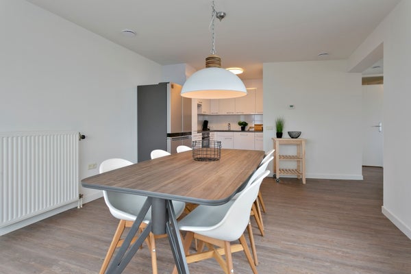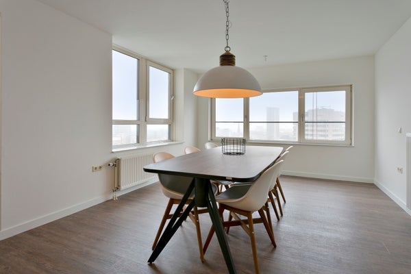 En entrant, vous trouverez une entrée spacieuse avec vestiaire et toilettes séparées. Le salon spacieux est décoré avec goût avec un coin salon confortable et une grande salle à manger. Grâce aux grandes fenêtres, vous pouvez profiter ici d'une vue impressionnante sur Eindhoven.