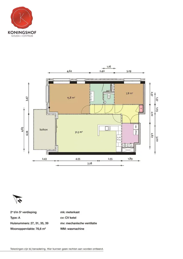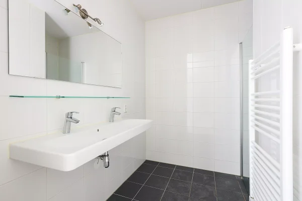 Cet appartement moderne offre un cadre de vie confortable et calme avec une disposition pratique. Le salon spacieux de 31,5 m² constitue le cœur de la maison, offrant beaucoup d'espace pour un coin salon et salle à manger, le tout baigné de lumière grâce aux grandes fenêtres. Atteignant un balcon adjacent, parfait pour se détendre à l'extérieur. L'appartement comprend deux chambres bien dimensionnées, idéales comme chambre principale et bureau ou chambre d'amis supplémentaire. La salle de bain moderne est équipée d'une baignoire et d'un lavabo, avec un WC séparé. Une pièce de rangement interne accueille le lave-linge et le sèche-linge. La cuisine ouverte est agencée de manière efficace avec les connexions nécessaires. Situé dans un quartier calme, les commodités quotidiennes et les transports publics sont facilement accessibles, faisant de cet appartement un choix idéal pour ceux recherchant confort et espace.