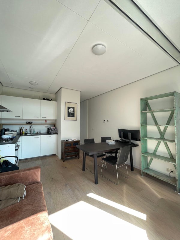 Le bâtiment a été entièrement transformé en clinique et unités résidentielles. L'appartement dispose d'un salon avec cuisine ouverte (environ 19 m²), d'une chambre (environ 9m²), d'une salle de bain, d'un débarras, d'un balcon et d'une terrasse sur le toit.