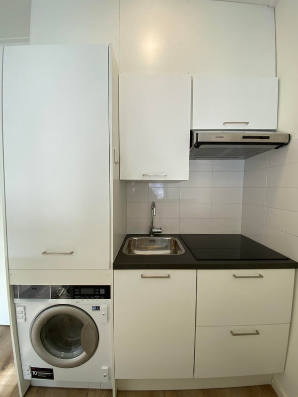 Un appartement élégant sera disponible à la location à Gratamastraat à partir du 1er avril. Il est situé au 1er étage à l'avant du bâtiment. L'accès à l'appartement se fait par l'entrée commune. Cet appartement dispose d'un salon avec cuisine ouverte (environ 15 m²), d'un coin nuit séparé (environ 8,5 m²) et d'une salle de bain. La salle de bain est équipée d'une douche, d'un WC et d'un lavabo. La cuisine comprend une plaque de cuisson, une hotte aspirante, un réfrigérateur et une machine à laver. L'appartement est chauffé par le chauffage par le sol et dispose d'un sol en PVC, de rideaux et d'une nouvelle peinture.