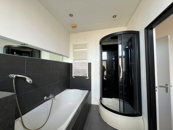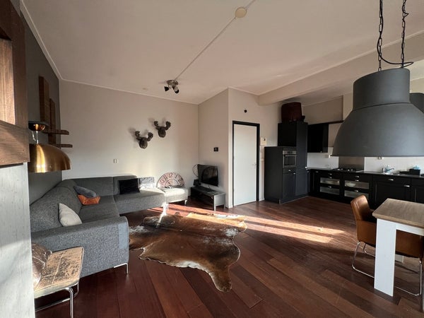 L'appartement est situé au deuxième étage du bâtiment et a une superficie totale d'environ 72m². Vous entrez dans le salon avec cuisine ouverte. L'appartement dispose d'une chambre, d'un toilettes, d'une salle de bains et d'une terrasse sur le toit. La cuisine est équipée d'un lave-vaisselle, d'un four, d'un réfrigérateur, d'un congélateur et d'une hotte aspirante. La salle de bains dispose d'une baignoire, d'une douche et d'un large lavabo.