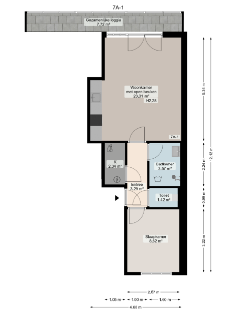 En entrant dans l'appartement, vous vous retrouverez dans le hall. De là, vous pouvez accéder au salon, à la salle de bain, aux toilettes séparées et à la chambre. Il y a aussi un petit espace de rangement situé dans l'appartement. Le salon spacieu et lumineux avec cuisine ouverte est équipé de tous les appareils électroménagers de luxe et bénéficie de beaucoup de lumière naturelle. De là, vous avez une magnifique vue sur le centre-ville de Groningen.