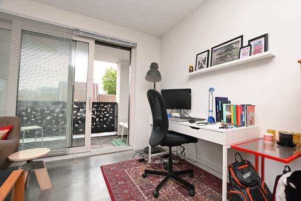 La propriété est accessible par l'ascenseur ou les escaliers. Vous entrez dans le hall et de là, vous accédez à un salon spacieux avec cuisine ouverte. La cuisine est équipée d'une plaque de cuisson à induction, d'une hotte aspirante, d'un four encastré, d'un réfrigérateur encastré avec congélateur, d'un lave-vaisselle et de nombreux espaces de rangement. Adjacent au salon, il y a un balcon donnant sur la Hereweg. La chambre dispose de suffisamment d'espace pour un lit double, et il y a un coin spécial pour un bureau. Atteignant la chambre, une salle de bain est équipée d'une douche, d'un lavabo avec meuble-miroir. Les toilettes se trouvent dans le hall.