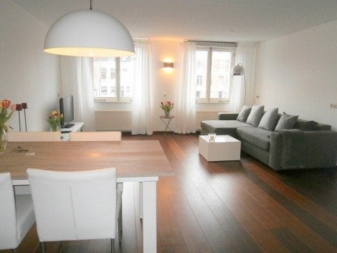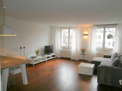 Dans le complexe d'appartements de luxe "Residence Nassauplein", situé dans un endroit fantastique au cœur de Haarlem, se trouve cet appartement lumineux, entièrement meublé de 3 pièces. Depuis le salon, il y a une magnifique vue sur l'eau de la Nieuwe Gracht. L'appartement dispose d'un balcon ensoleillé orienté sud-ouest, avec vue sur le joli jardin commun. Le logement comprend 2 chambres spacieuses avec beaucoup d'espace de rangement, une cuisine moderne et une salle de bains, et un espace de rangement personnel au sous-sol. La gare NS de Haarlem se trouve à quelques minutes à pied de la propriété. Les routes principales vers Amsterdam, Schiphol et La Haye sont facilement et rapidement accessibles.