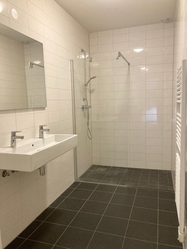 À Plaza West, vous résidez dans un appartement moderne à louer, situé sur l'ancien terrain d'expédition de la PTT. Cet appartement dispose d'une cuisine entièrement équipée avec des appareils encastrés et d'une salle de bain confortable, ainsi que d'un balcon privé pour votre plaisir. La cuisine ouverte comprend des armoires blanches et un plan de travail en composite noir, avec des équipements tels qu'une plaque de cuisson à induction et un four multifonction. La salle de bain est finie avec des carrelages au sol à pois noirs et des carreaux muraux blancs, avec un double lavabo et une douche à l'italienne. L'appartement comprend une place de parking dans le garage, accessible par l'entrée principale. Pour louer, vous devez répondre à un critère de revenu de 48 fois le loyer de base brut par an pour une personne.