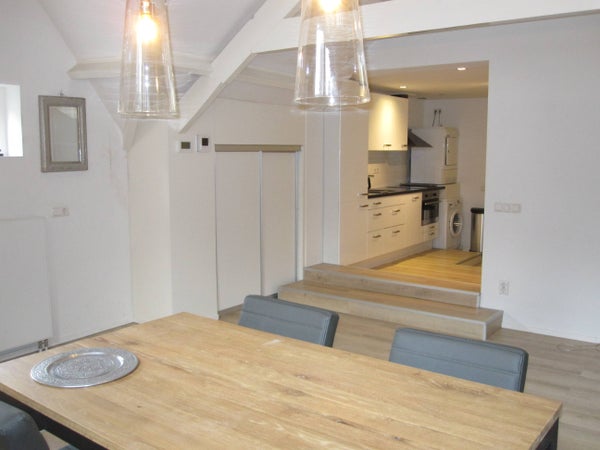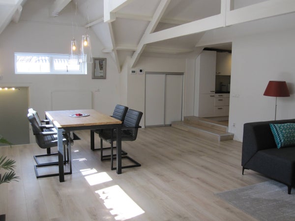 Un appartement rénové spacieux, meublé, moderne de 2 pièces (75m2) avec entrée privée en plein centre de Haarlem. À 100 mètres de l’autobus 300 vers Hoofddorp/Schiphol et à distance de marche de la gare. Plan de l'étage : entrée, hall, escaliers, salon spacieux de style loft (8,15x5,2) avec beaucoup de caractère et parquet stratifié. Cuisine semi-ouverte (3,6x2,37) avec lave-vaisselle, plaque de cuisson, hotte, four combiné, réfrigérateur, congélateur, lave-linge/séchoir. Hall (3,9x1), toilettes modernes (1x1), salle de bain moderne (2,54x1,3) avec grande douche à l’italienne, lavabo et sèche-serviettes. Grande chambre (5x3) avec lit double et armoire. Cet appartement dispose de parquet stratifié dans tout l'espace, de verre isolant (HR++), de chauffage central, d'un nouveau système de récupération de chaleur et de 6 panneaux solaires. Étiquette énergétique A.