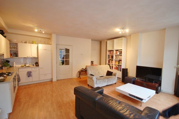 Dans le cœur du centre-ville, à 50 mètres de la Grote Markt, se trouve cet appartement bien entretenu au premier étage d'un petit complexe. L'immeuble a été entièrement rénové en 1999 et dispose d'une terrasse sur le toit commune orientée à l'ouest. La disposition comprend une entrée commune, un escalier menant au premier étage et un stockage intérieur pour vélos. À l'intérieur, vous trouverez un hall avec rangement, des toilettes modernes et une salle de bain lumineuse avec douche, baignoire et lavabos. Le grand salon dispose de trois fenêtres donnant sur la rue commerçante, et la cuisine ouverte en coin est équipée d'appareils modernes. Il y a une chambre spacieuse à l'arrière, et la surface habitable est de 60 m². Les animaux de compagnie ne sont pas autorisés et l'appartement est proposé non meublé.