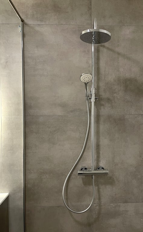 La salle de bain rayonne de tranquillité et de luxe, avec une douche à l'italienne confortable et un meuble lavabo élégant. Il y a également suffisamment d'espace prévu pour un lave-linge et un sèche-linge. De plus, vous trouverez des toilettes séparées et une salle technique pour un espace de rangement supplémentaire.