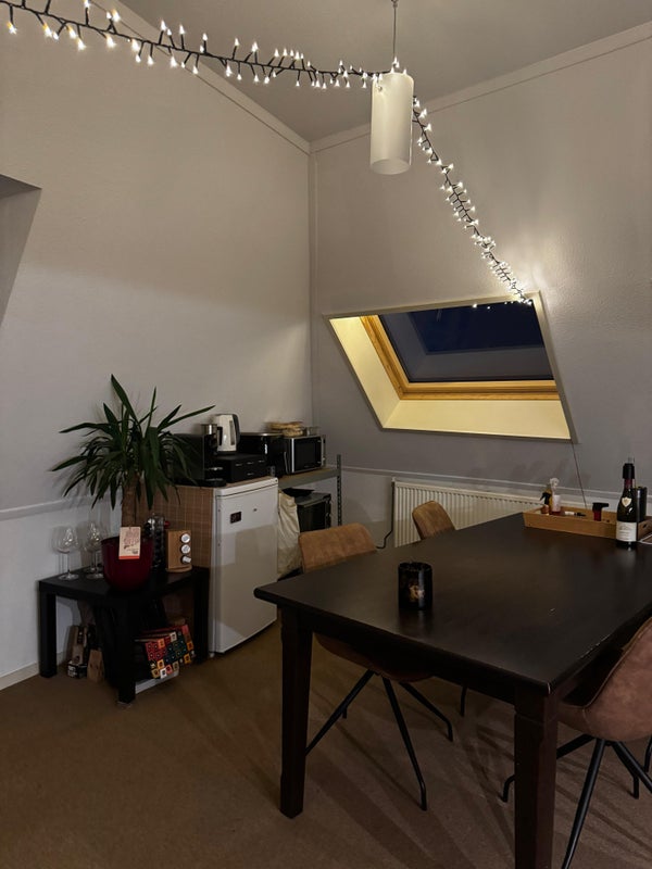 Le logement dispose de deux chambres spacieuses, d'une grande buanderie séparée avec suffisamment de place pour une machine à laver et un sèche-linge, et d'une salle de bain généreuse dotée d'une douche et d'une baignoire séparée. De plus, il y a un rangement au rez-de-chaussée, idéal pour du stockage supplémentaire ou pour garer des vélos. Un point culminant absolu est la vaste terrasse sur le toit, où vous pouvez profiter d'une vue magnifique sur la ville de Kampen et vous détendre en toute tranquillité.