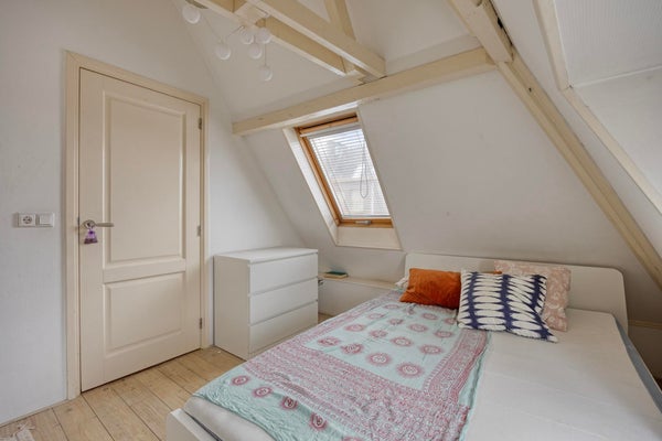 En prenant l'escalier, vous atteignez le deuxième étage avec une très grande chambre. La salle de bain dispose d'une douche séparée, d'une baignoire et d'un lavabo. De plus, il y a un local de lavage séparé.